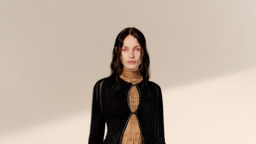 “It’s all about making versatile pieces that can be layered and styled in different ways, and that reflect the movement in couture,” Ardakani explained during a walkthrough. Echoing July’s couture outing, called The Folded Sea, a tightly edited knitwear lineup had intricately engineered gills, called fleurs-de-mer after sea anemones, that could be tugged this way and that to spiral around the body.