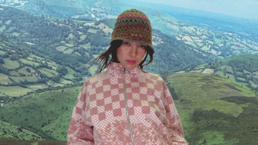 Laura Ashley’s ditzy florals might sound 1,000,000 miles away from Paolina Russo’s trademark jersey tops and optical phantasm prints, however Russo and co-founder Lucile Guilmard wished to discover a extra female facet this season. This may very well be seen by way of the light-weight chiffon handkerchief attire, adorned with a mix of Liberty-esque florals and graphic sports activities jersey numbers—collaged collectively utilizing blown-up pictures of archival designs from earlier seasons. The pastoral theme (additionally mirrored by this season’s intentionally low-fi lookbook, that includes pictures taken by Russo throughout a hike in Wales) continued with the pair’s “girly” tackle a tracksuit, within the type of an elasticated maxi skirt and matching zip-up jacket, that includes distorted picnic blanket checks.