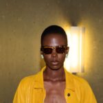For her, a silky blouse featured a geometric pattern lifted from one of his archival menswear ties. A bright green crewneck—almost Brat green, even—was inspired by the green lining of a built-in pen holder found on one of his archival pieces, too.