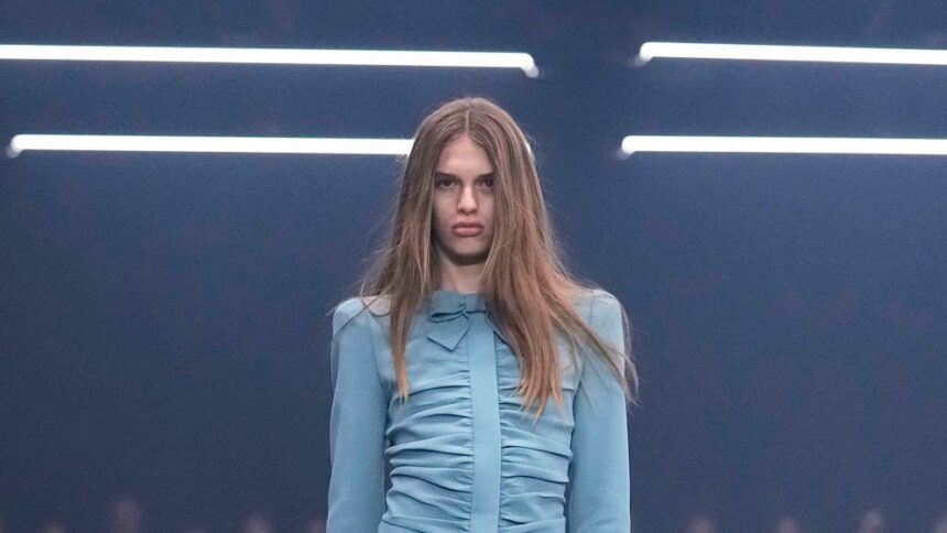 Michele nonetheless loves a sequin for night, however his most persuasive robes featured not a one. They got here solid-colored in sapphire blue or ruby pink, with uneven draping, or in black and white tuxedo detailing with a sheer prepare. The present ended with the fashions gathered within the heart of the sq. house, gazing up at a lightweight present designed to evoke the pulsing of synchronous fireflies in what was one of the crucial memorable and shifting visuals of the week. “It’s the time to push an increasing number of,” Michele stated, “to make folks dream, to attempt to escape, not simply from actuality, however from the concept that you are able to do nothing.”