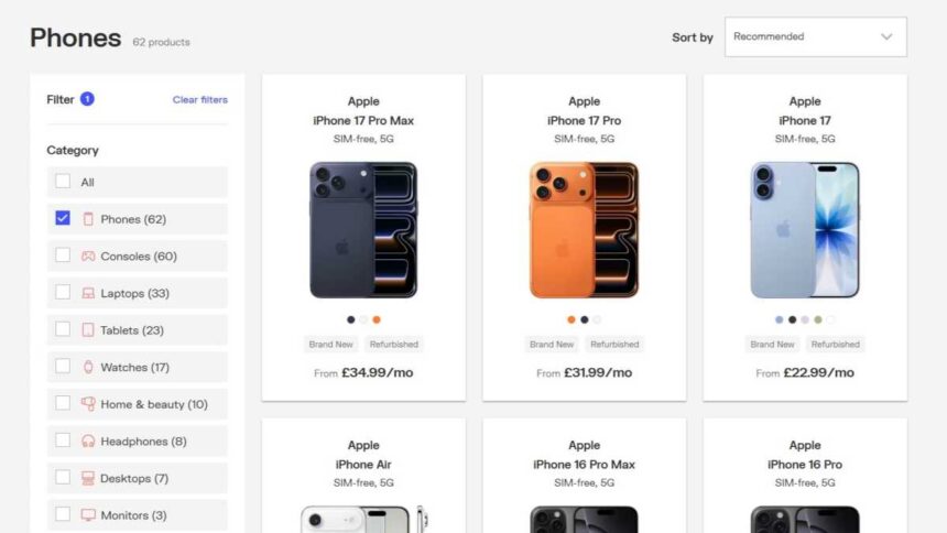 Raylo also keeps a limited stock of devices. So, taking phones for example, the choices are iPhone, Google Pixel and Samsung Galaxy. If you want a Motorola, OnePlus, Nothing, Xiaomi, Oppo or another brand, then you’ll need to look elsewhere.