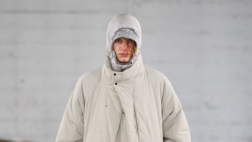 Long before gorpcore entered the fashion vernacular, Aizawa’s technical gear championed an innovative and high-brow design approach that has felt totally at home on the runway, and gone on to influence a generation of outerwear designers. “I always dreamed of creating my own brand and showing in Paris, and I’ve achieved that goal,” he said backstage before today’s show. “The past 20 years have flown by. I’m so grateful to all the staff who have been involved with me up until now. It’s been a wonderful time.”