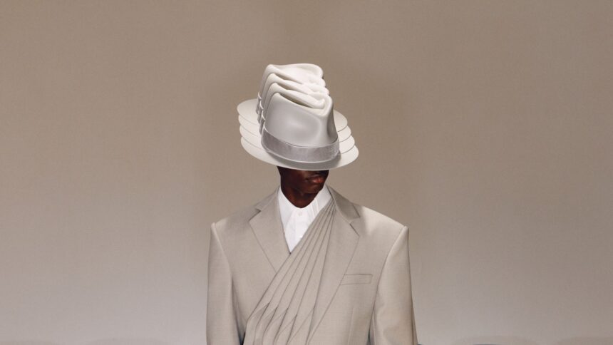 “That is to indicate that the images you’re about to see should not AI-generated.” That’s the PSA that Xander Zhou shared on his social media, accompanied by video footage of his assortment on set, forward of the rollout of this lookbook. There’s no questioning why such messaging felt mandatory. Of late, Zhou has been toying with the boundaries of our notion and the boundaries of our sartorial comprehension. He’s added wings and screens and arms to varied tailor-made items, contemplating themes of innovation, evolution, and the potential implications of dwelling within the age of speedy technological development.
